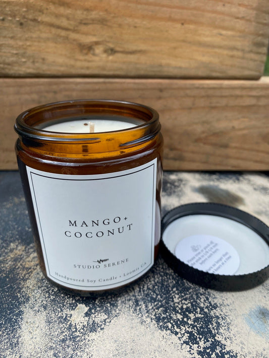 • Eco-Friendly Natural Soy Wax Candle with Tropical Mango Coconut Paradise Scent