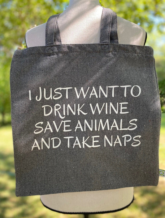I Just Want To Drink Wine Save Animals And Take Naps Eco-Friendly Tote Bag