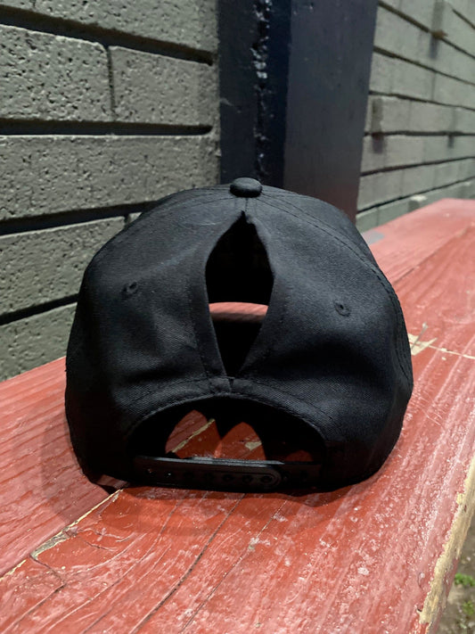 Positive Vibes Only Embroidered Black Ponytail Baseball Hat