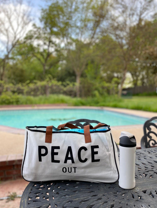 Chic Canvas Slip On Tote Bag with Vegan Leather - PEACE OUT