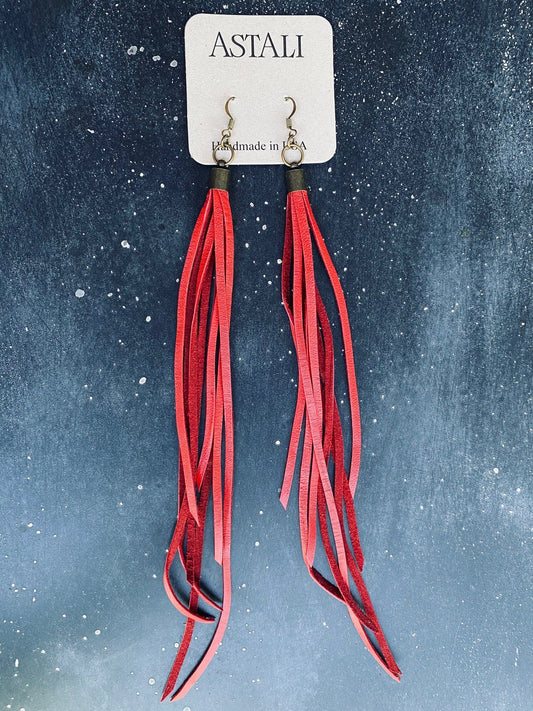 Handmade Red or Black Deerskin Leather Tassel Earrings