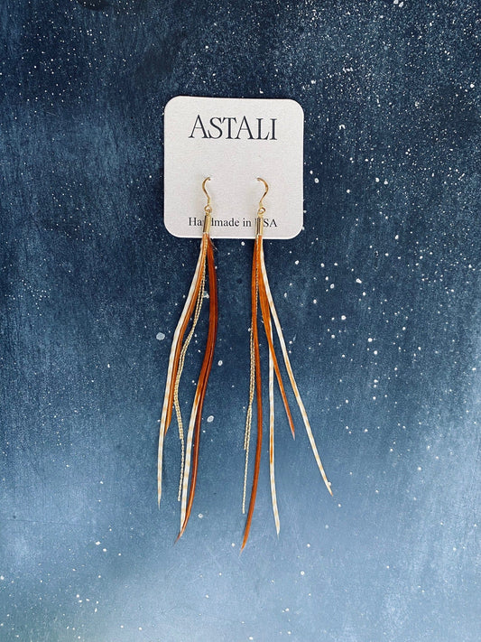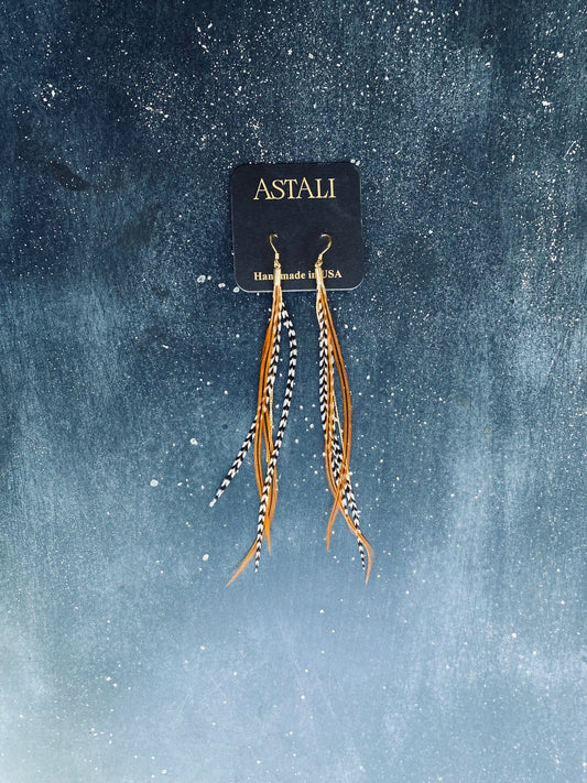 Gold Rooster Feather Natural Mix Earrings