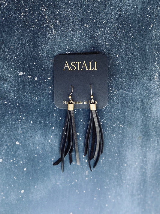 Handmade Black Deerskin Leather Mini Tassel Earrings