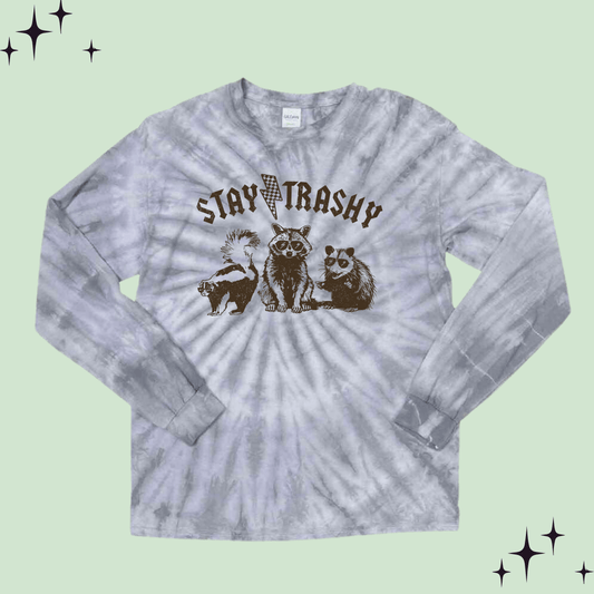 Stay Trashy Skunk Raccoon Opossum Silver Cyclone Tie Dyed Cotton Graphic T-Shirt