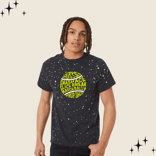 Tennis Ball Bleach Washed Black Graphic Cotton T-Shirt