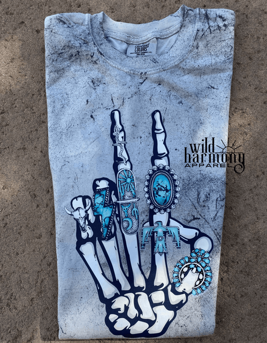 Covered in Turquoise Skeleton Hand Smoke Colorblast T-Shirt