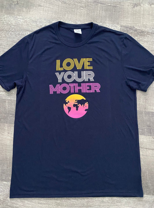 Love Your Mother Earth on Navy Eco-Friendly T-Shirt