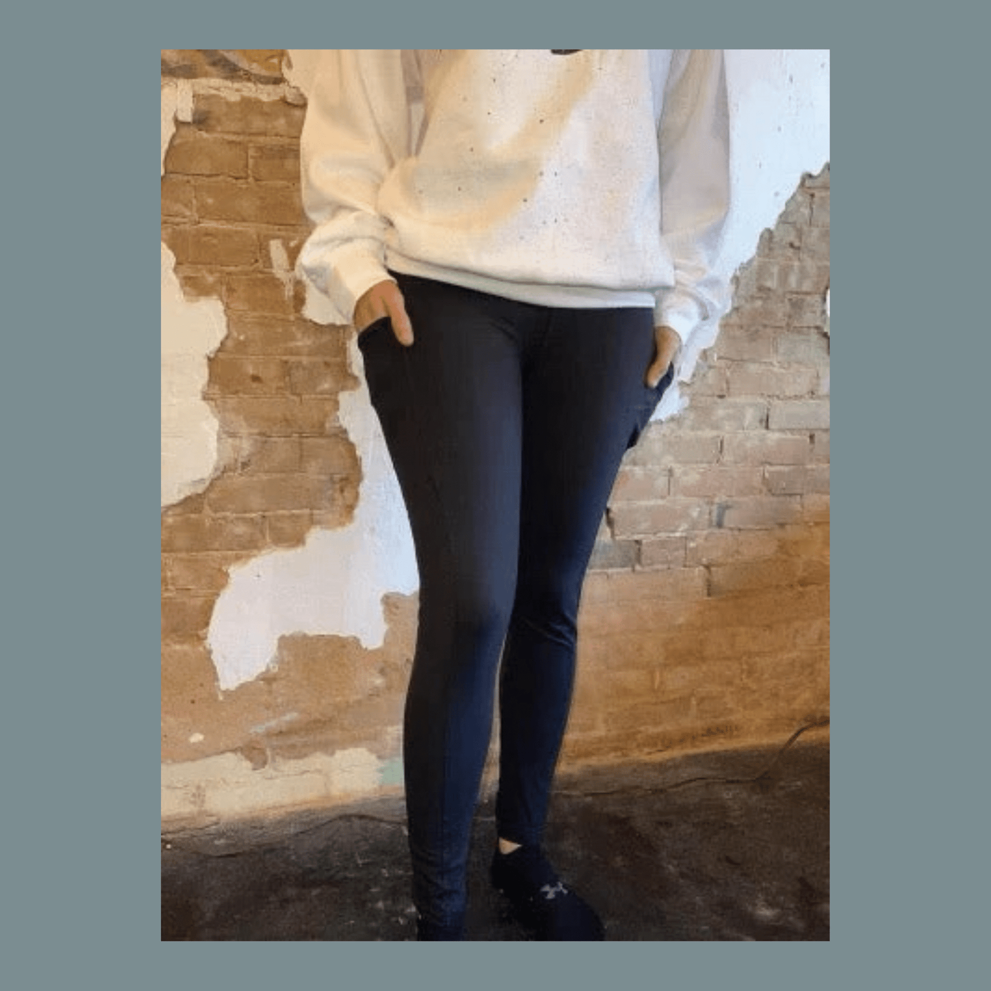 Mixing style with unbeatable flex, these black full length leggings with pockets will transition you from morning smoothie to a midday chin-wag with Bono effortlessly. Super soft, triple brushed fabric is sure to pass the squat and stretch test with FLYING sparks of joy!