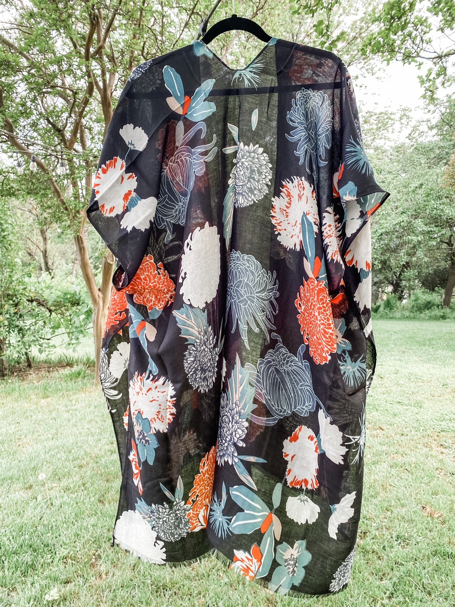 Get ready to be effortlessly chic with this stunning Black Tropical Floral Kimono! It's the perfect addition to your wardrobe, featuring a black design with hints of pink and sage florals that will make heads turn. Don't take yourself too seriously - fashion is all about having fun and feeling fabulous!