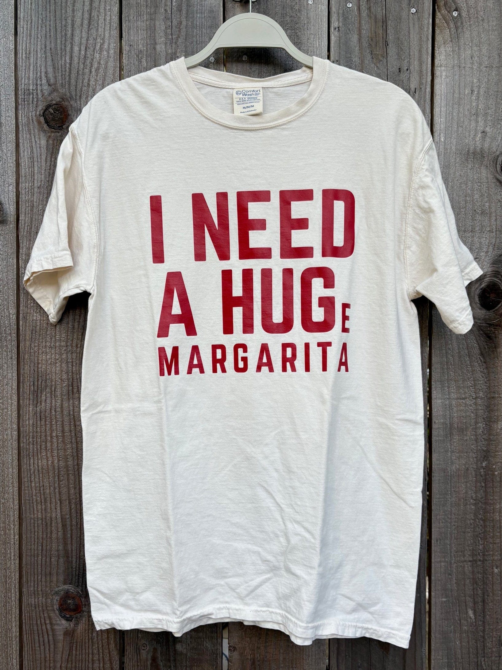 Say it with a smile in this cheeky t-shirt! The "I NEED A HUGe MARGARITA" graphic delivers the perfect punchline! Soft, comfortable, and conversation-starting, this tee is your go-to for brunch dates, happy hours, or whenever you're feeling a little parched for affection (or tequila). Pairs perfectly with jeans, laughs, and yes—actual margaritas!
