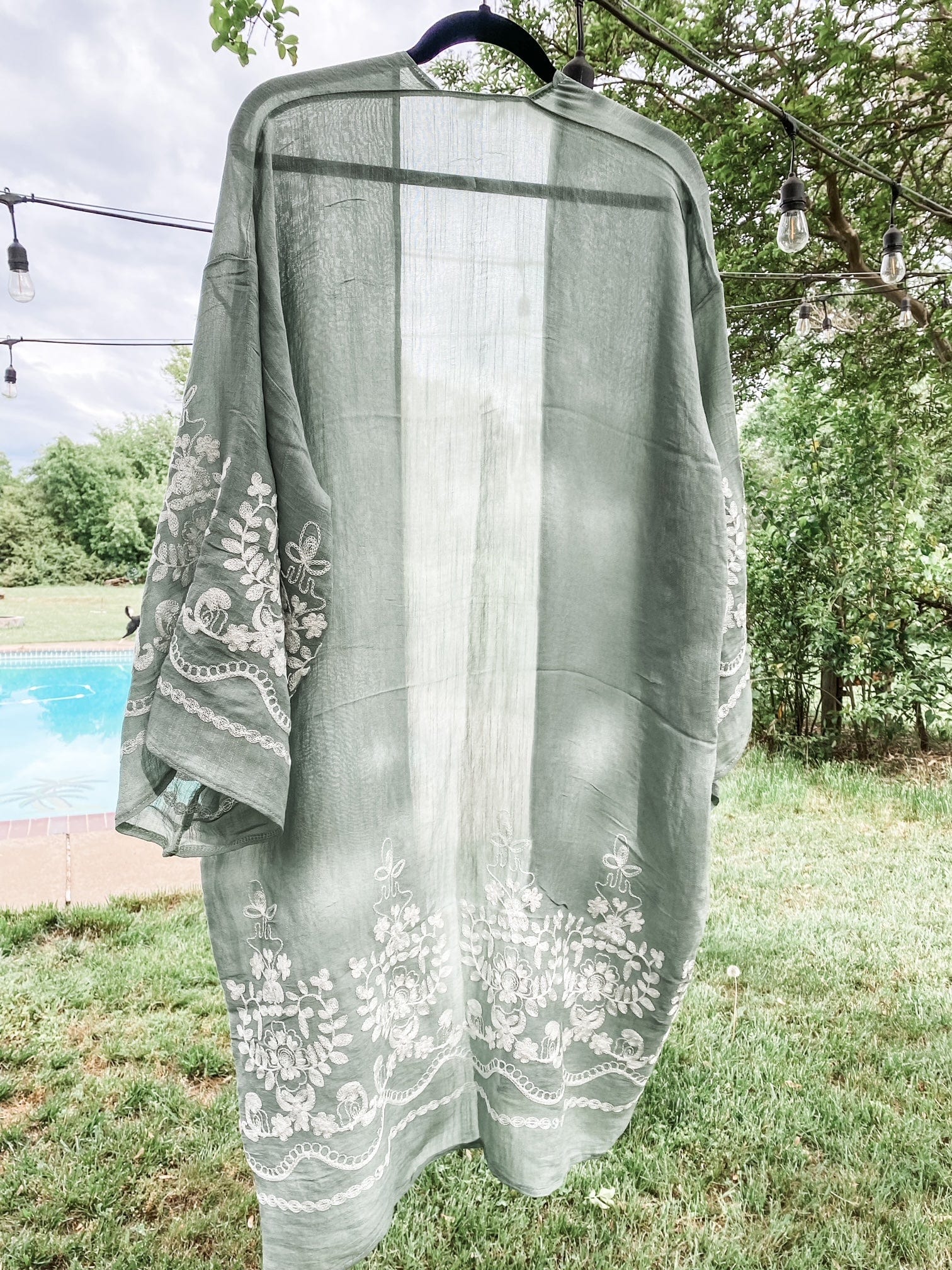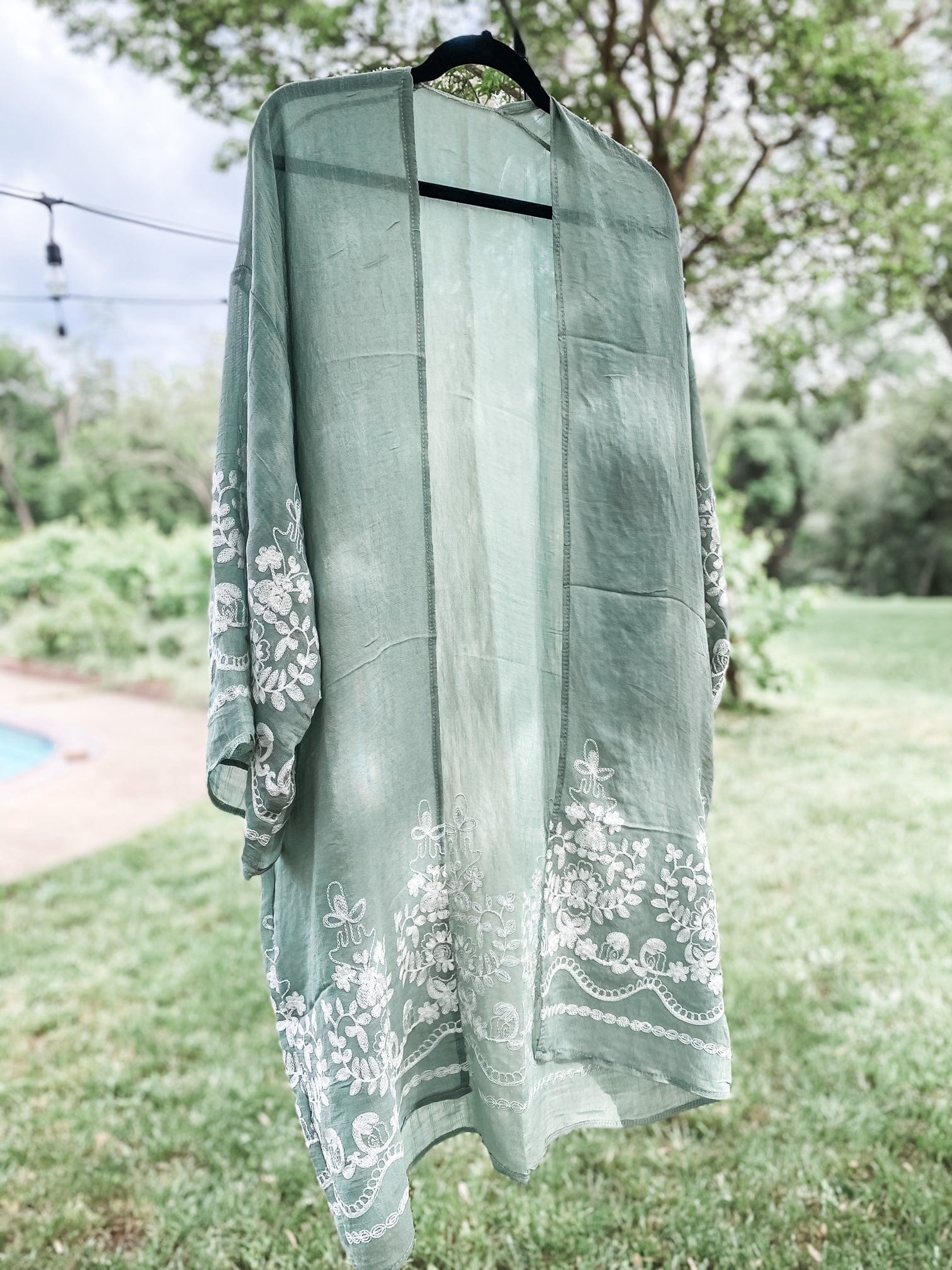 Feel as beautiful and bohemian as the outdoors in this enchanting Sage Green Embroidered Floral Vine Kimono! This light sage piece is a dreamy look with gorgeous embroidered vine details. Flowing and feminine, it will have you feeling zen in no time! 🌿