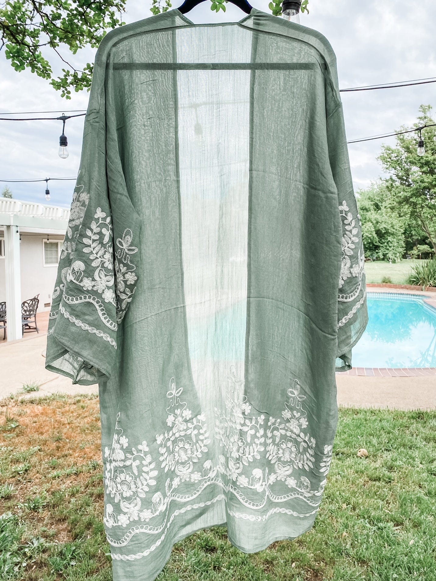 Sage Green Embroidered Floral Vine Kimono