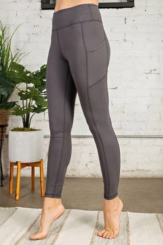 The Smoky Grey Buttery Soft Leggings with Pockets are perfect for a casual day out or a relaxing day at home. The full length leggings have a wide waistband that is comfortable and will not dig into your skin, as well as yoga stitch to help keep the leggings in place. The rectangular side pockets are perfect for storing small items, like your phone or car keys. Best of all, these leggings are made from buttery soft fabric that feels great against your skin!