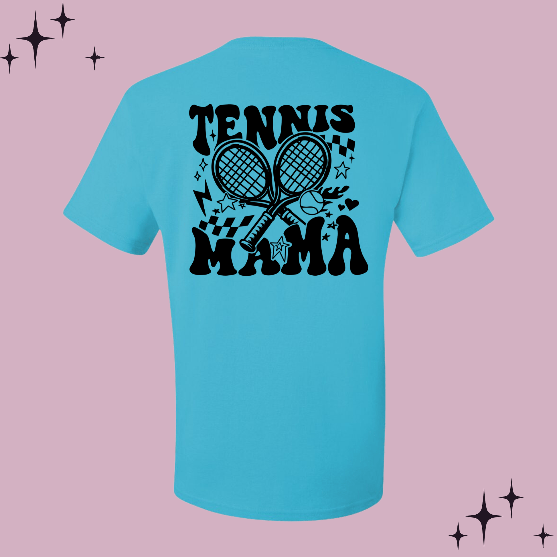 Hit the court in style with our Tennis Mama Aquatic Blue T-Shirt! This playful and stylish shirt features a tennis racket on the front with "tennis mama" printed, and two more rackets on the back. Perfect for any tennis-loving mom, this shirt will make you the envy of the courts.